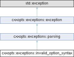 Public Member Functions inherited from cxxopts::exceptions::parsing | |