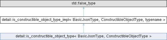Inheritance diagram for detail::is_constructible_object_type_impl< BasicJsonType, ConstructibleObjectType, typename >: